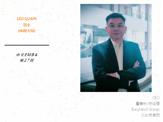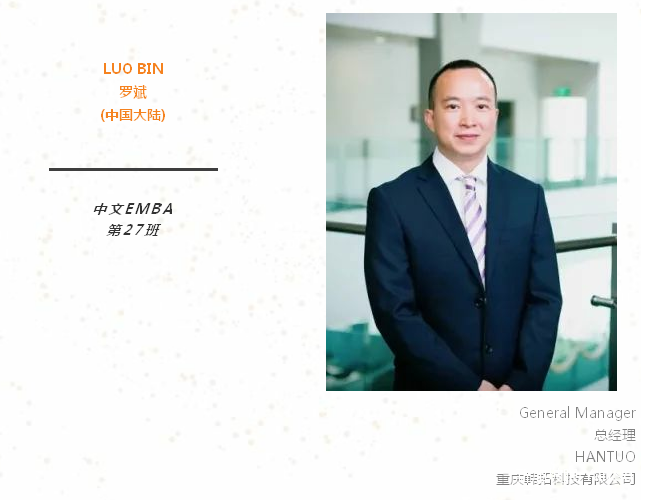 重返校园是一个转折点,希望从中对个人领导能力及人脉有进一步提升。另外,个人职业定位是希望能帮助更多中国企业到海外发展,期望在EMBA课程中能认识更多的想出海的国内朋友。谢谢!