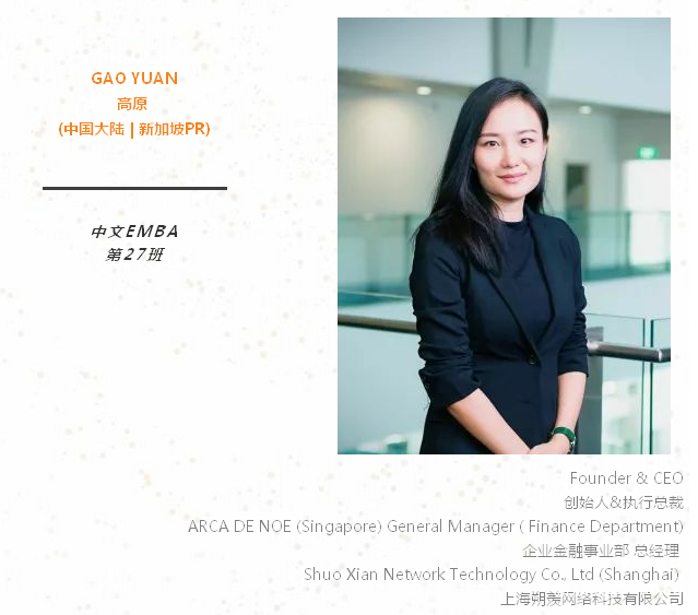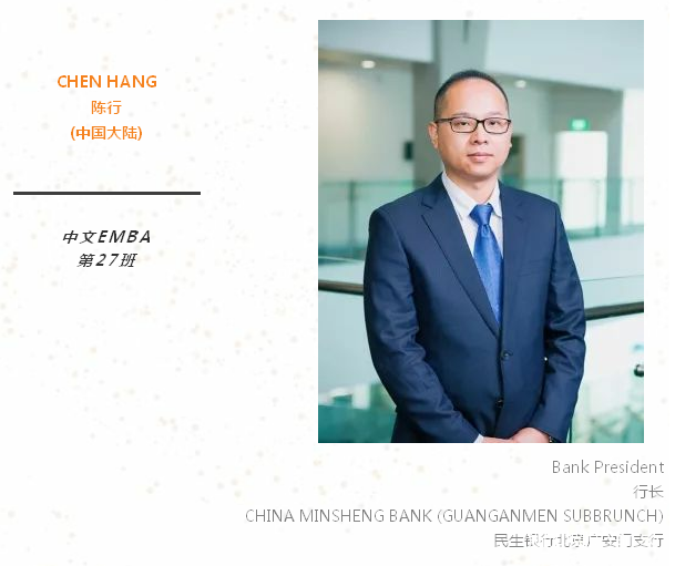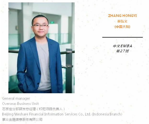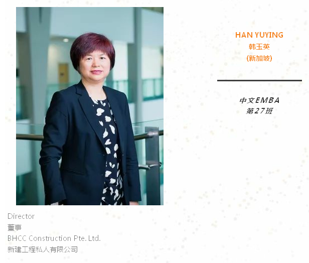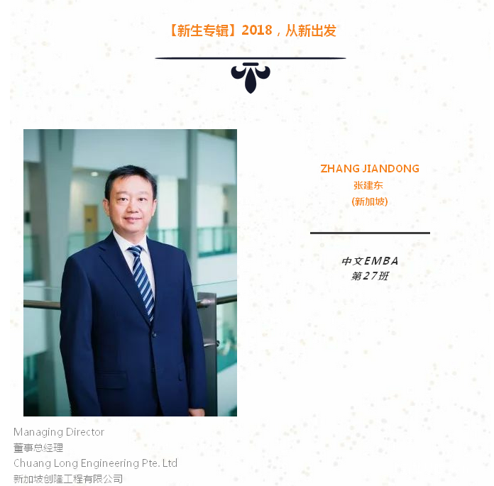重返校园是一个难得的重新思考、升华人生的机遇。希望在新国大EMBA开启属于我们共同的崭新篇章,实现未来持续性的群体和个体的共赢。