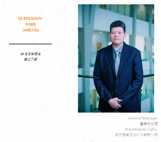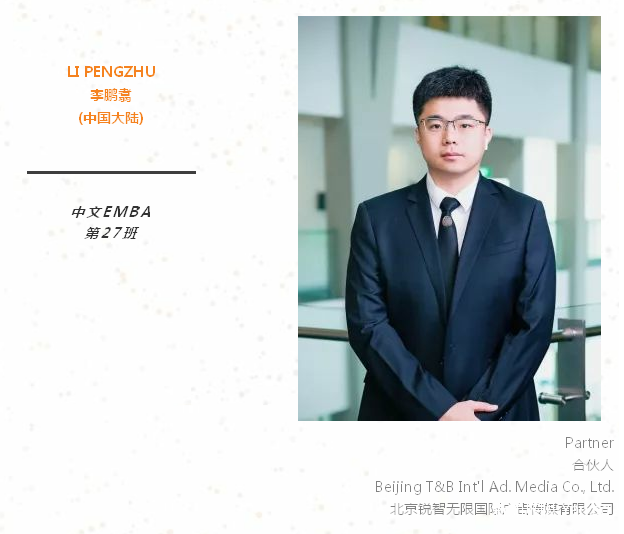 能在我迈入42岁“高龄”的年头重回校园,是一个难能可贵的机会。回想大学阶段学到的很多书本知识,直到这几年才觉得当年的学习状态很幼稚,很多管理学上的理论根本无法真正理解。而在经历了那么多实战的考验后,我越来越清晰地感受到自己的管理瓶颈和差距。我很珍惜这个机会,希望能在这段经历中从老师和同学们身上学到弥足珍贵的知识。真心期待未来的两年时光!与大家共勉。