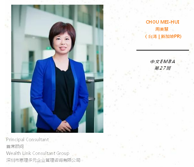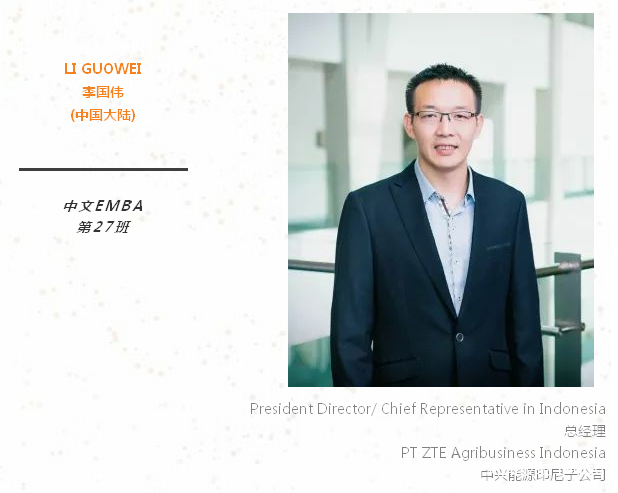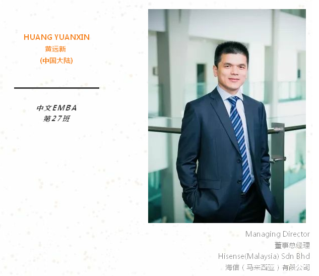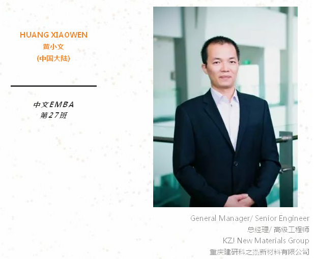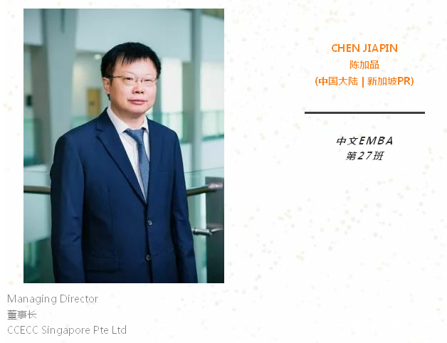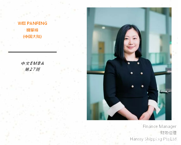 当今贸易形势日趋复杂,面临着更多的挑战。我一直希望能够继续充电,让科学的理论知识和实践相结合,所以我报考了新加坡国立大学EMBA,也十分有幸能被录取。希望在未来2年的学习中,能够更多理论支持实践,更多案例融会贯通,更多经验互相分享。