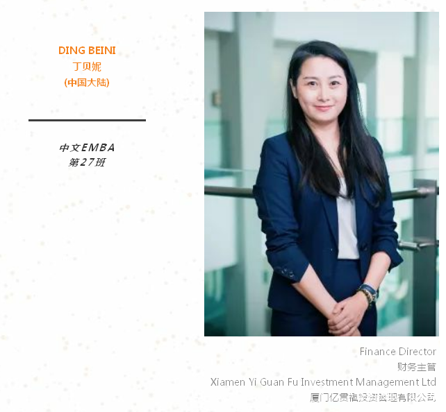 我有幸加入新国大中文EMBA大家庭,希望在接下来的校园生活中,学习到系统的金融和和管理知识,共叙同学情谊,在未来人生路上遇到更好的自己。