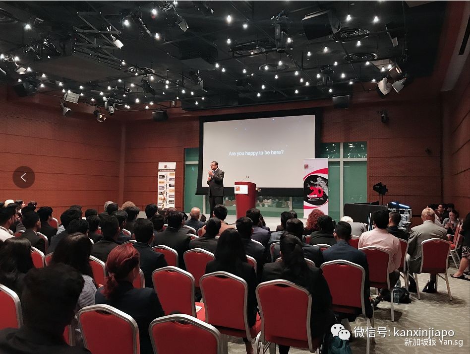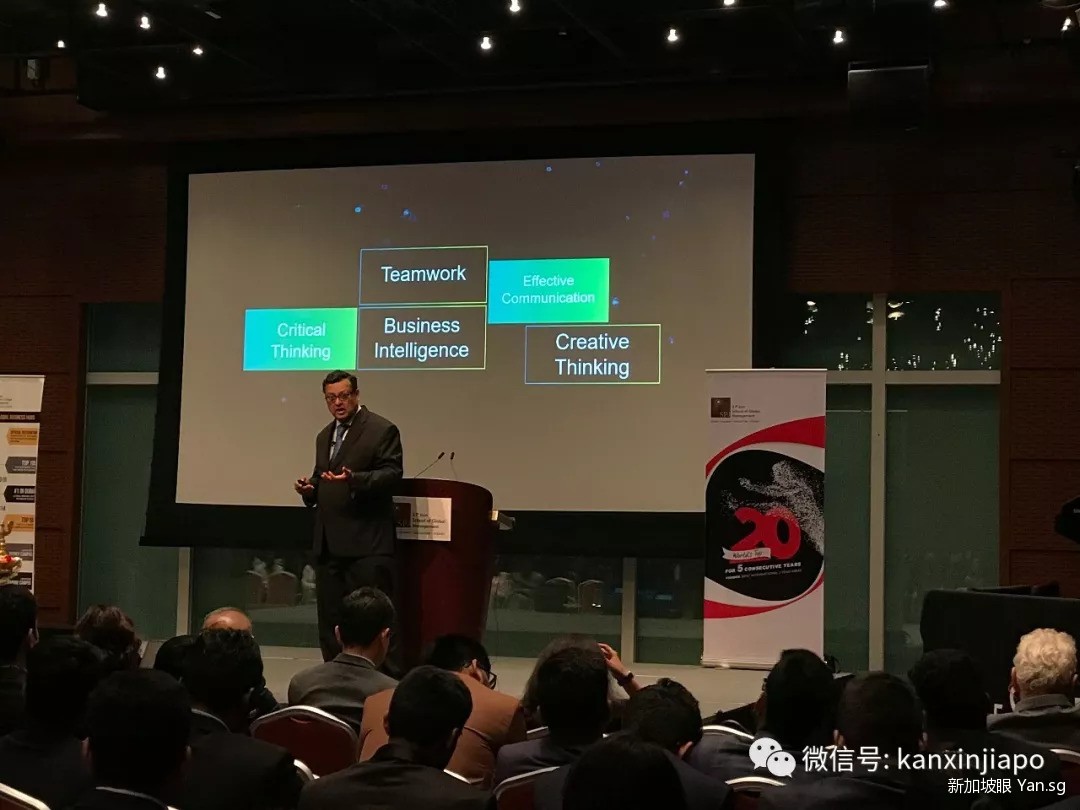 这是SP Jain商学院开学典礼,礼堂内人气爆棚。学生坐在前面,家长坐在后面,都听得很投入。