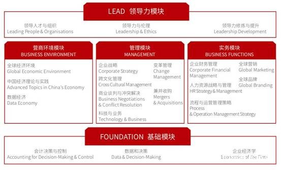 南洋EMBA(中文)课程专设基础模块、营商环境模块、管理模块、实务模块和领导力模块,让学员在中西方管理思想的激荡与融合中进一步开阔视野。