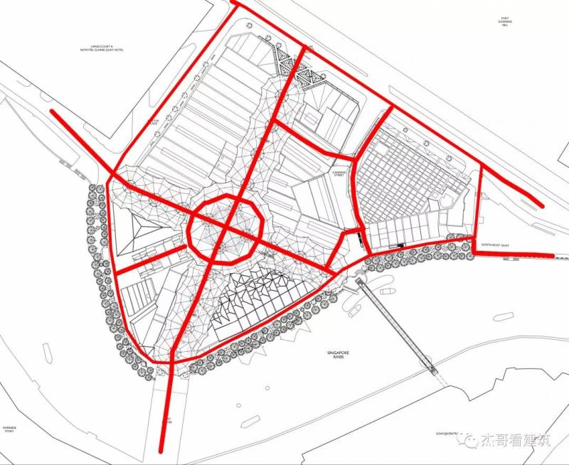 新加坡南海滩开发项目位于新加坡市中心的滨海区和市政区之间,涵盖了整个城市街区。同时把新建筑与现有经过翻修后的建筑和多功能建筑相结合,形成了一个高效节能,包含了商店、咖啡馆、餐厅、酒店和公共空间的,将生活和工作结合在一起的新城市街区。一条宽阔的景观步行街——就像一条穿过场地的绿色的脊柱,由一个巨大的天篷保护着,让这块公共空间免受来自热带气候的影响以及阳光的直射。