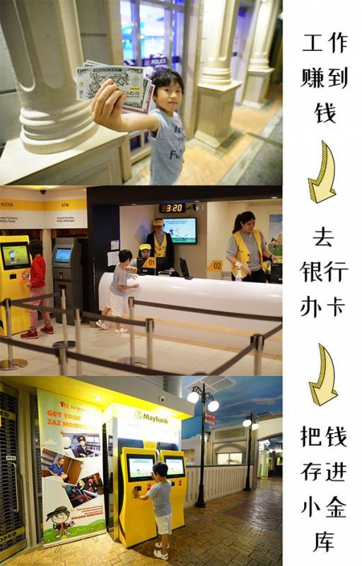 为了追求真实的体验,孩子们可以身临其境地穿上制服,使用ATM,操作飞行模拟装置,使用内窥镜做手术等等,感受在新加坡工作的一系列流程,通过自己的努力和汗水获得报酬:专用货币--趣志币。