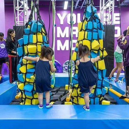从攀岩墙到摇摆木桥再到泡沫梅花桩,玩起来比看上去要难得多。看着小朋友们摇摇晃晃,拚命想要走到对岸的努力的样子,简直被萌化了。