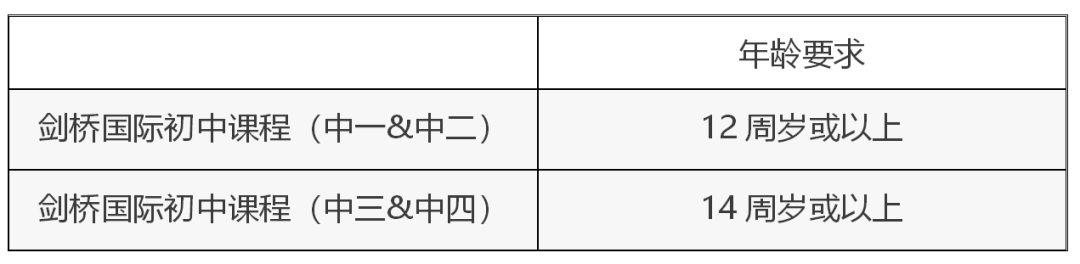 剑桥国际初中课程(中一&中二)旨在让学生掌握初中前两年所要求的英语、数学、科学和其他科目的基础知识,让国际学生打下扎实的学习基础。该课程适合作为小学毕业生的升学途径,为就读剑桥国际初中课程(中三&中四)或其他教育体系课程做好准备。 顺利完成课程后,学生可升读剑桥国际初中课程(中三&中四)。