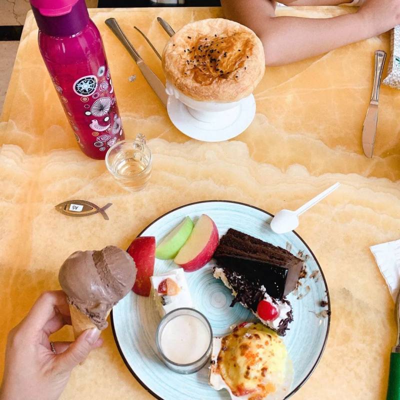 甜点&饮料:口感很不错,其中巧克力布朗尼蛋糕真的很好吃!冰淇淋口味较多,给香草味和巧克力口味点赞。饮料的话,最有特色的就是试管果汁啦