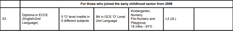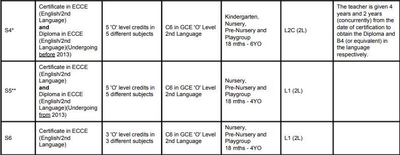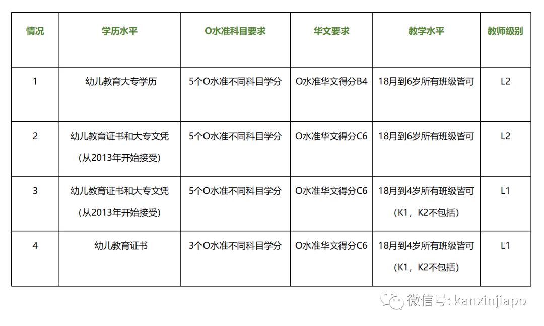 其中第2栏,如果老师已经完成ECCE(幼儿教育)大专课程,但是语言要求只有C6,依然可以拿到L2证书。