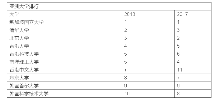 点击这里查看完整版《泰晤士高等教育2018年亚洲大学排名》~