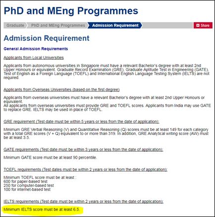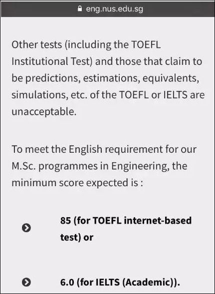 大学生申请新加坡的大学需要证明英语语言水平哦,具体语言要求根据各个大学及专业有所不同,学生们可以去大学网站打探一番。举个例子,新加坡国立大学工程专业硕士就明确要求申请人至少要达到雅思6分;而新加坡南洋理工大学的硕士及博士工程专业则明确要求雅思6.5分。大多数高校要求雅思成绩必须在两年有效期以内。