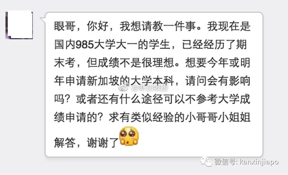 编者按有网友想要来新加坡上大学,但是在国内大学期末考成绩“不理想”,遂联系我们咨询如何申请新加坡的本地大学。