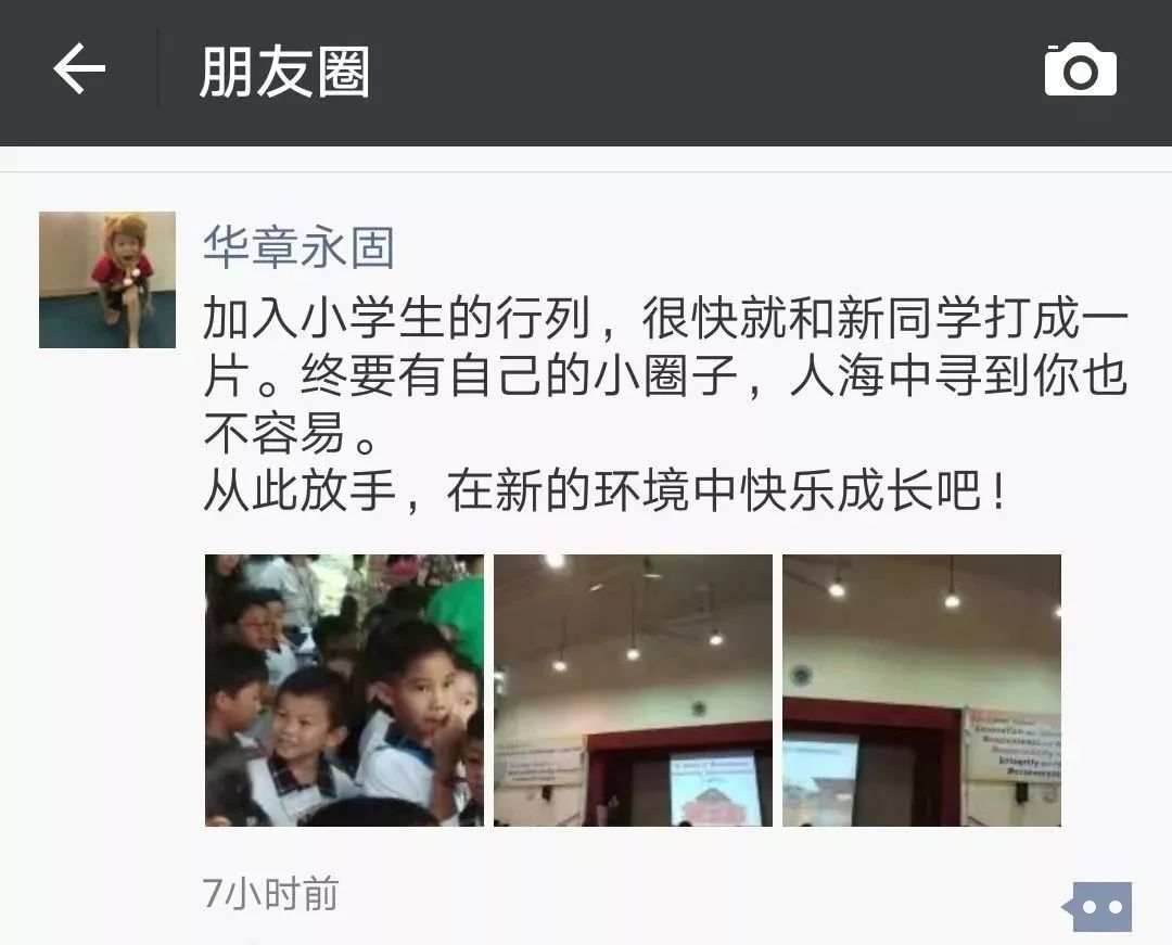 晒娃的人,恨不得搞个开学直播,我娃从家里出发了,发一条朋友圈;我娃到学校了,发一条;我娃的新学校,新同学,发一条;校长和老师讲话了,发一条……