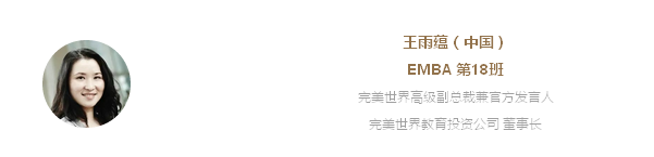 如果说,过去的我是我个人努力的结果,那么,现在的我是新国大EMBA的良师益友所造就的。两年的密集学习,在和老师与同学的互动交流中备受熏陶。所谓:行动带来收获。这个学习让我有了太多人生启发,尤其是人与人的相处和包容,做人与做事的执着与责任。