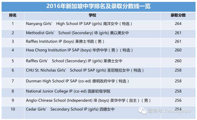 现在就让我们来看看2016年的新加坡中学排名及录取分数线吧!这项排名根据的是各个中学在2016年PSLE考试的录取分数线而排定。