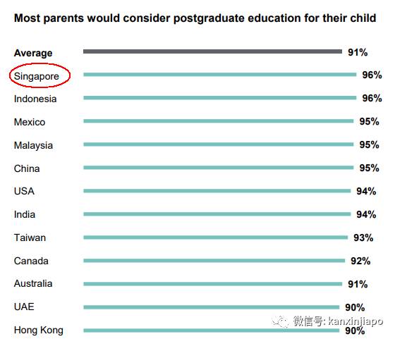 可是这几年来这一现象已经有了很大的改观,大学实验室里有越来越多的新加坡人进入了硕士或是博士课程学习,而且普遍学的都不错。汇丰银行的这份调查报告也印证了这一现象,新加坡的家长在考虑让孩子接受学士后(研究生)教育的意愿上,和印尼的家长并列第1,高达96%的新加坡家长表达了这一意愿。看来以后在职场上,大家可能就要跟更多的Doctor厮杀了。