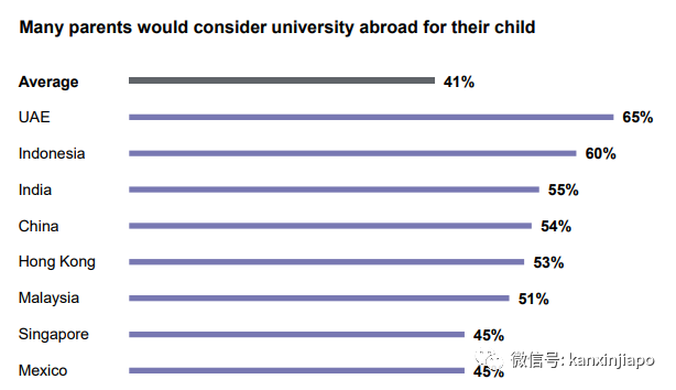 在要不要送孩子出国接受大学教育这件事上,感觉新加坡的家长对于本地的教育质量还是很放心的,毕竟本地大学国际排名越来越前也是不争的事实,在这项排名上,新加坡和墨西哥并列第7。