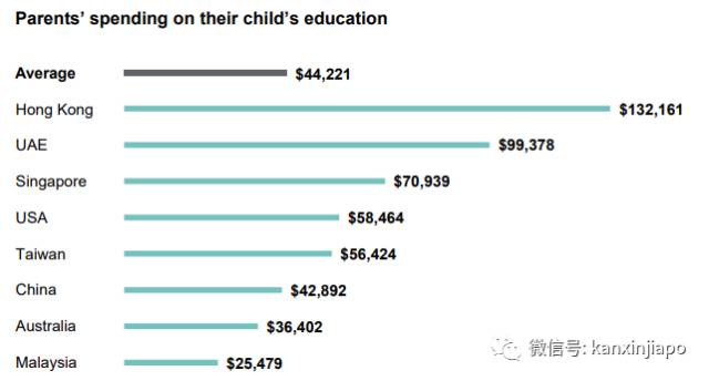 而在教育花费上(小学、中学到高等教育),人均GDP靠前的新加坡虽然在榜单中排名第3,却比排名第一的中国香港落后了一大截。而人均GDP比榜单上大多数国家都少的中国大陆地区,也冲到了第6位,真正应了那句老话——再穷不能穷教育,只能说中国父母太拼(you)命(qian)!