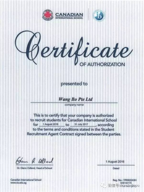 加拿大国际学校颁给望博的合作证书,很少机构能够拿到。