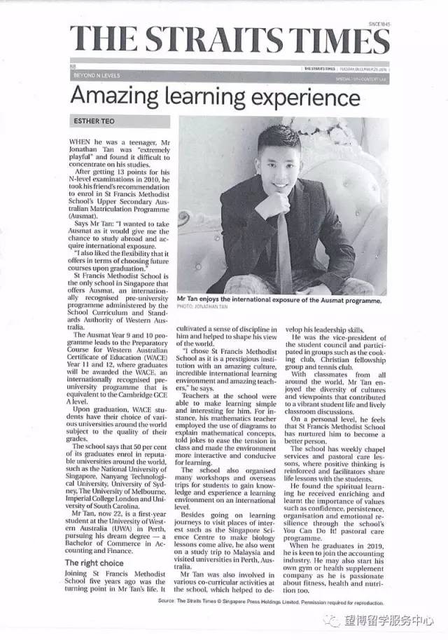 编者按进入八月,学生们该收心了,要去哪里读书,成了议事头条。怎样到公认教学质量高、社会治安好的新加坡求学,又有哪些注意事项,不少人都关心。我们据此采访了专注新加坡留学服务已有10年经验的“望博新澳留学”负责人黄传有(Jerry)老师。