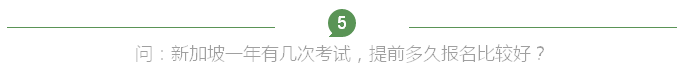 答:新加坡几乎每个月都有至少3次考试,一般来讲提前一个月报名都没问题。当然,如果想要好一点的考试时间(口语考试可以选择时间),那还是提早报名比较好,越晚报名,就会没有心仪的位置。2017年下半年的考试位置都已经放出来了,如果确定好时间现在都可以报名了。