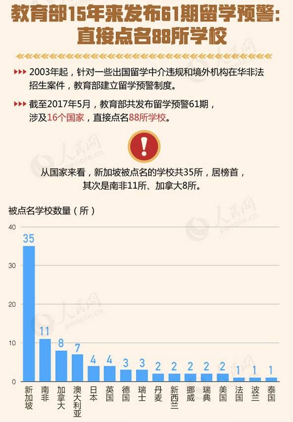 这样的“留学预警”,中国教育部足足发了15年,一共有61期,点名了88所海外学校,其中新加坡的学校居然占了35所,一不小心就拿下了这个不太光彩的“第一”。
