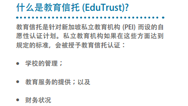 2009年,新加坡开始严格整顿留学市场,推出“教育信托保障计划”,也就是EduTrust,唯有获得这个计划的认证,才拥有招收国际学生的资格。