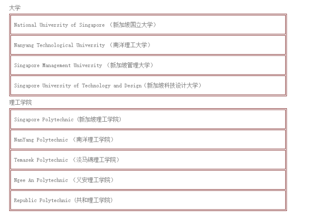 其中,直接受到中国教育部认可的新加坡高校,并不算多: