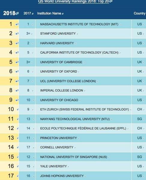 今天(6月7日)下午,新加坡社交媒体开始刷屏,在最新的QS排名上,新加坡南洋理工大学(NTU)居然超越了新加坡国立大学(NUS)成为了亚洲第一,排名第11!而NUS则排名第15。