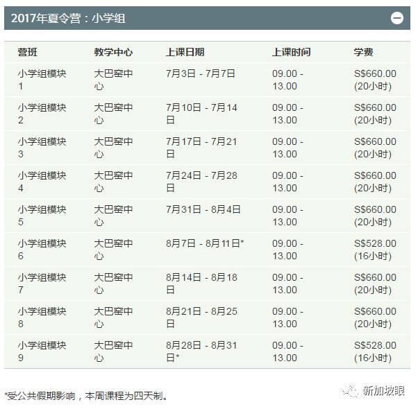 暑期临近,更有新加坡青少学习营,以及和新加坡知名学校Tanglin Trust School联合推出的小学英语融合课程 (English Immersion Experience 2017: Primary),让孩子们的暑假更精彩。