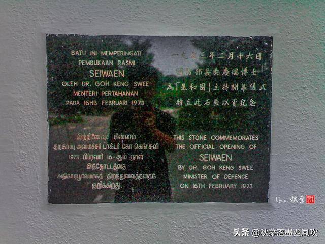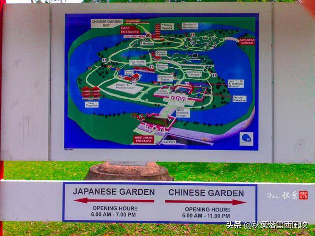 跨过十七拱桥,门口写着的就是星和园。上面的"SEIWAEN"似乎是日语发音。旁边用新加坡标准常见的四种语言写着介绍。因为新加坡主要有华裔,印度裔,马来裔还有部分欧亚裔和混血等,而且作为曾经的英国殖民地。理所当然四种语言分别就是:英语,汉语,泰米尔语和马来语。
