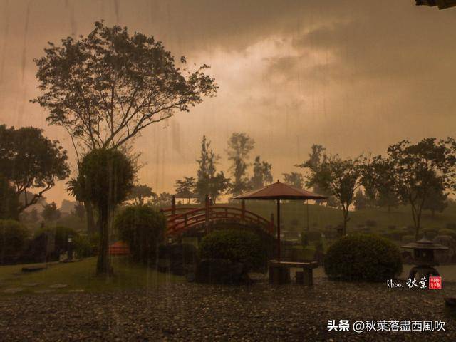 新加坡的天气,遇到雨季就会像中国高原的天气一样,前一秒可是蓝天白云,下一刻就是狂风暴雨。还好这里有庭院可以暂且避雨。