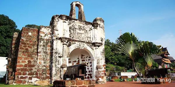 圣地亚哥城堡由葡萄牙人建于 1511 年,被荷兰人炮轰破坏,仅有城门幸存。由此可以俯瞰整座城市,港口及马六甲海峡。