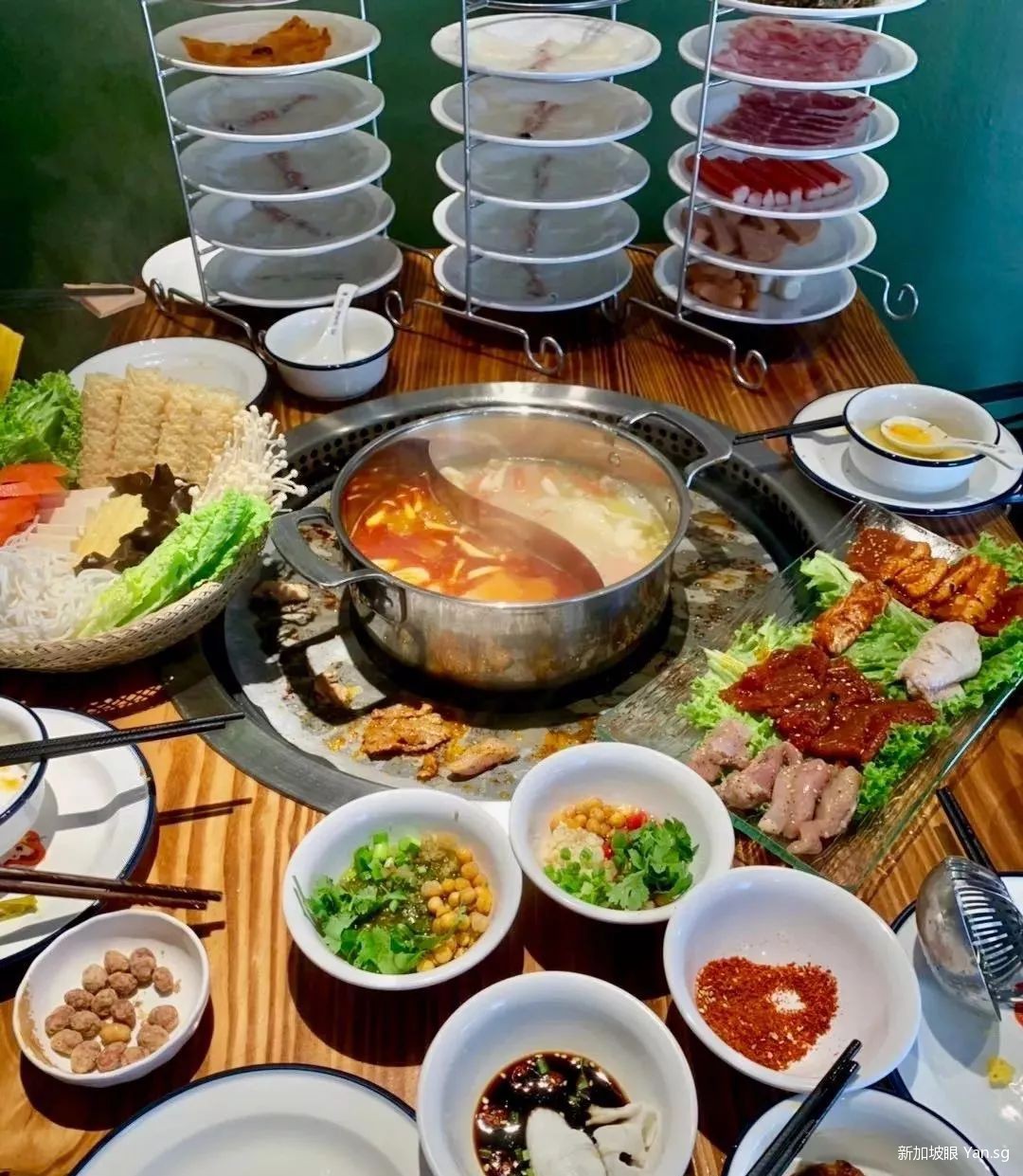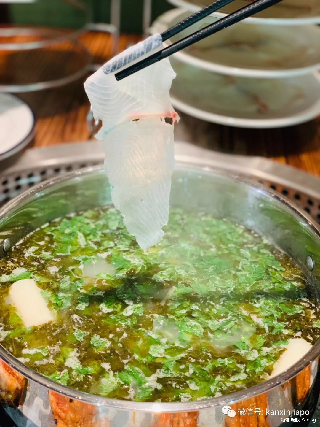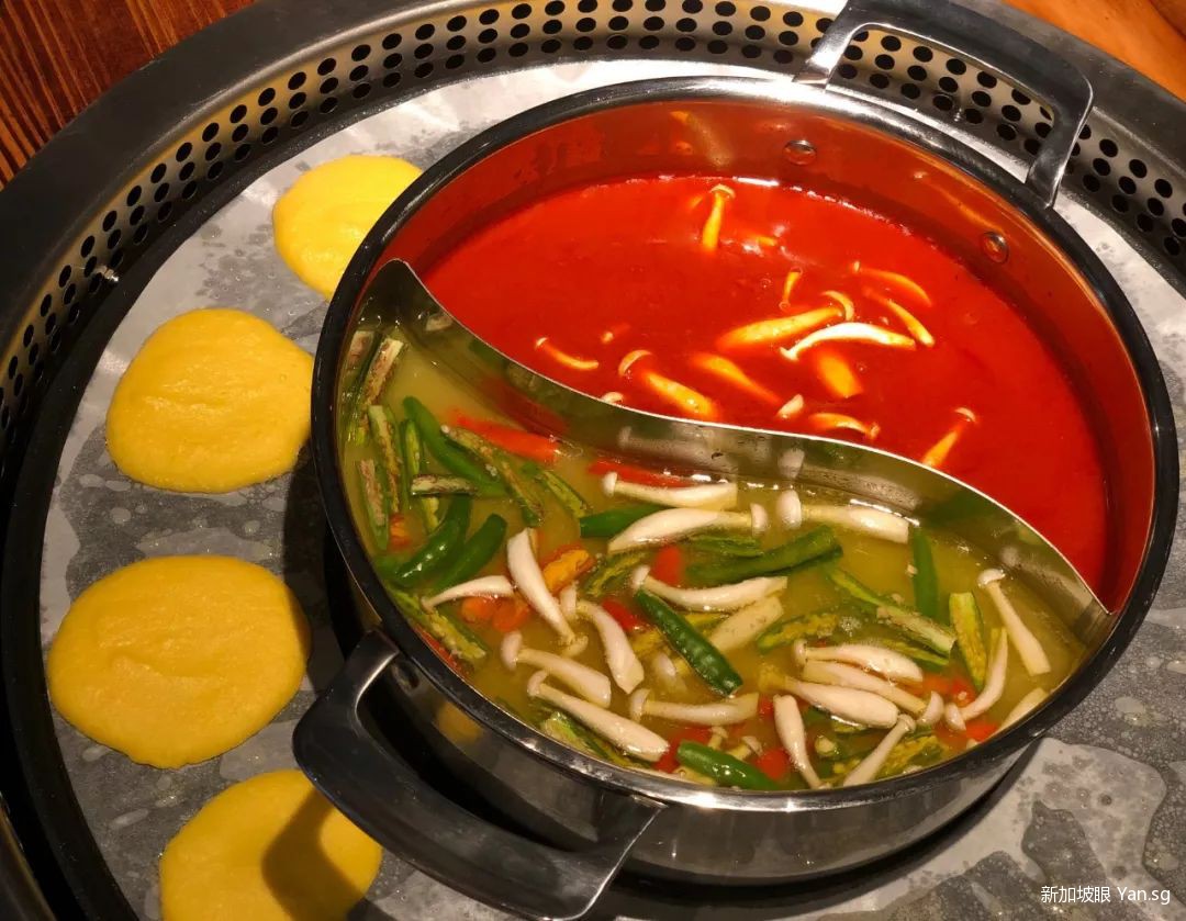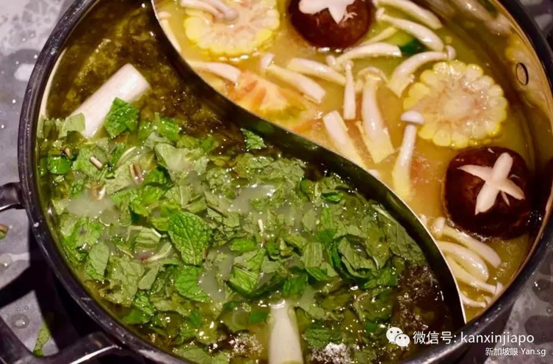 除了常见的鸳鸯锅、川味麻辣锅,这里还有新加坡独一份的招牌酸菜薄荷锅以及养生鱼骨锅。