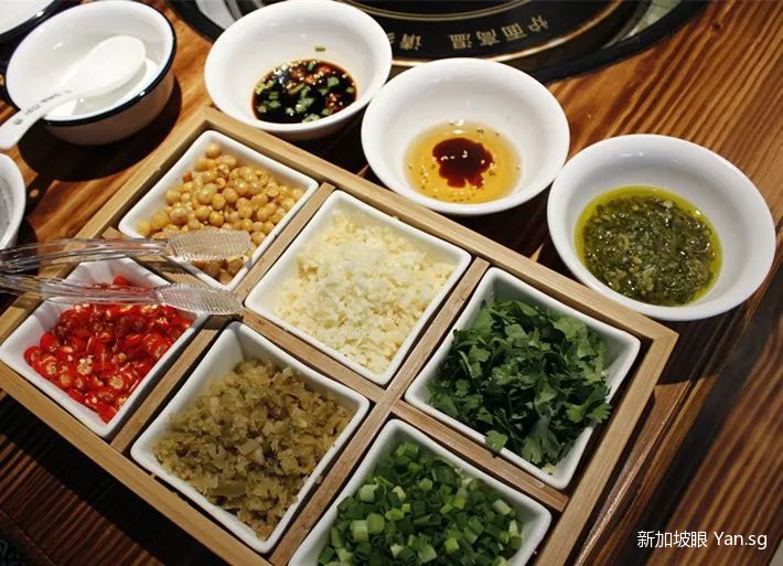 秘制青椒碟要搭配薄荷锅、双椒锅和红酸锅;秘制豉油碟搭配滋补锅;蒜蓉香油碟则要搭配麻辣锅。