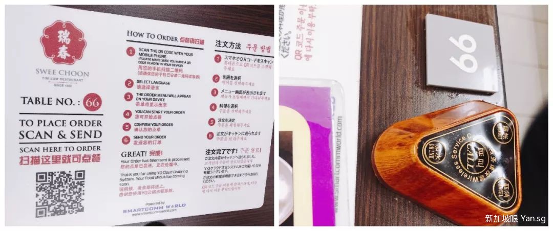 为了照顾来自世界各地的游客,每个桌上都贴着点菜指南,列4种语言,包括日语和韩语。而且,只需按桌上按钮就可以呼唤服务员了。