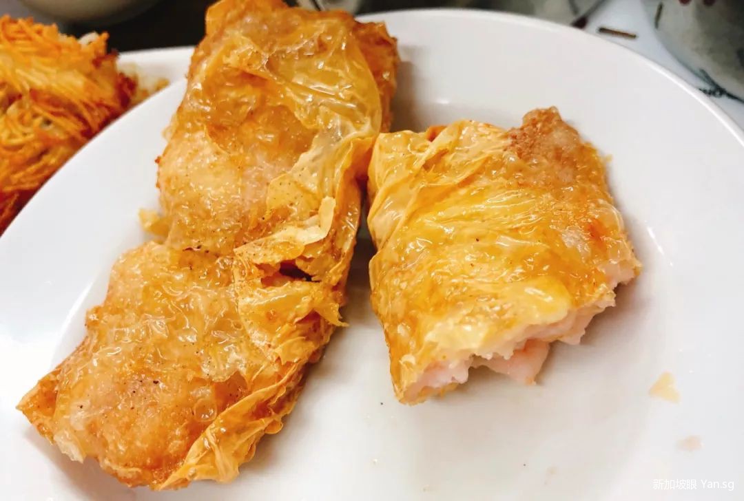 外面的腐竹皮炸得刚刚好,保留了原有口感,里面的虾肉很扎实弹牙!