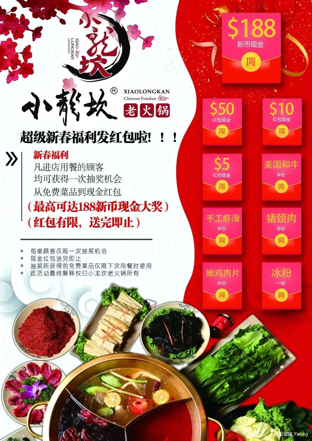 小龙坎新春狂撒红包,每桌食客100%中奖