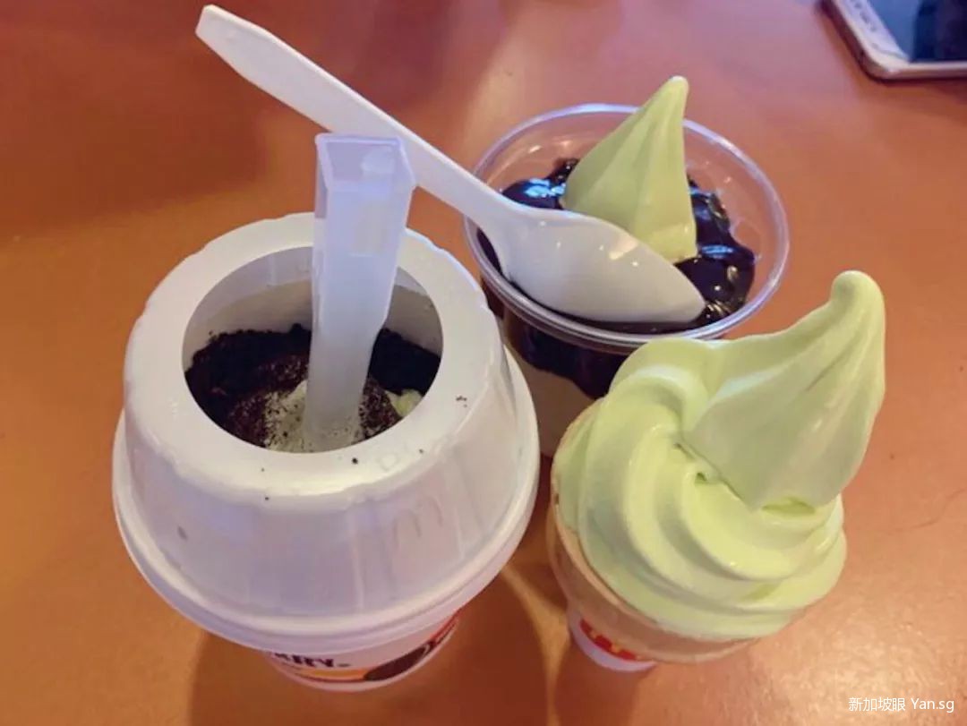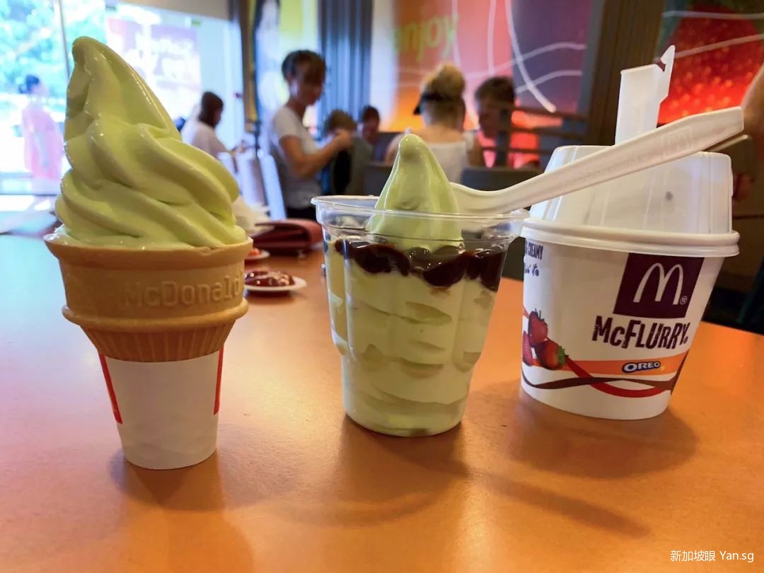 班兰口味冰淇淋班兰是热带非常有名的一种植物,新加坡许多甜点里都有使用,比如包括林俊杰都赞不绝口的Pandan绿蛋糕。麦当劳走在甜品界前沿的甜筒当然也不能落后!一口气把旗下所有的冰品都出了个班兰口味~