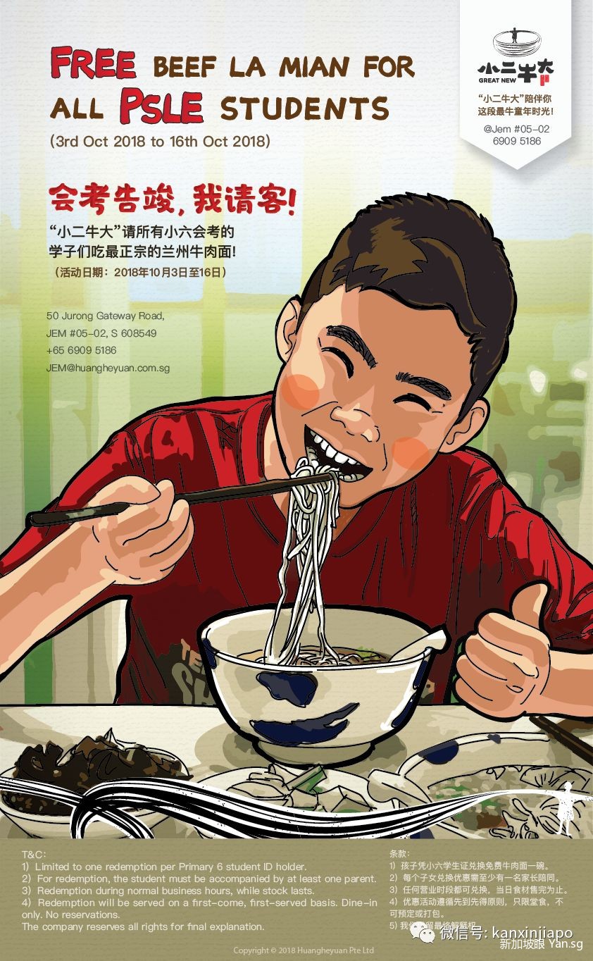 PSLE告竣,“小二牛大”请小六生免费吃牛肉面
