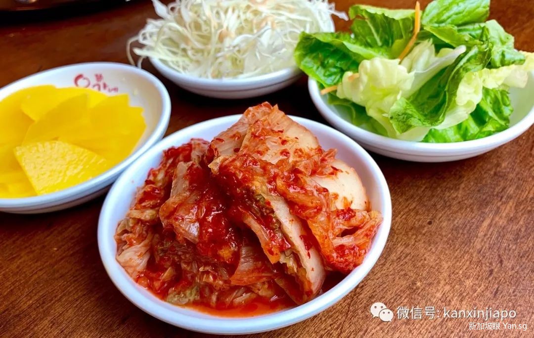 自助的泡菜、高丽菜丝、腌酸萝卜包你吃个够!小菜无限量供应这很符合韩国当地餐厅的传统了,新加坡不少韩餐店小菜都要收费,简直太不友好了~