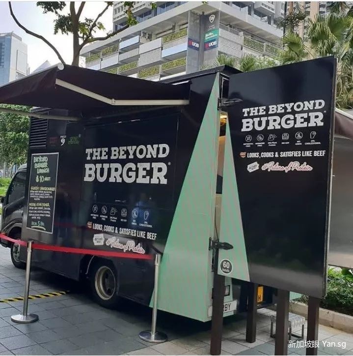素食者的福音——未来汉堡,来新加坡了!就在君悦酒店前,这个小小的汉堡车引起了吃货的高度注意。