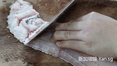 健身过的脆鱼肉,看起来像草鱼,其实有很大区别,需要特殊的烹调方式。切鱼片要适中均匀,每片保持0.5厘米厚度。