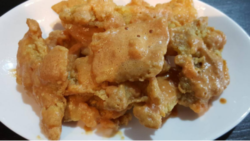 涌泉食品为每一个顾客提供咸蛋鱼皮制作秘笈,还可以做成咸蛋炸鸡皮: