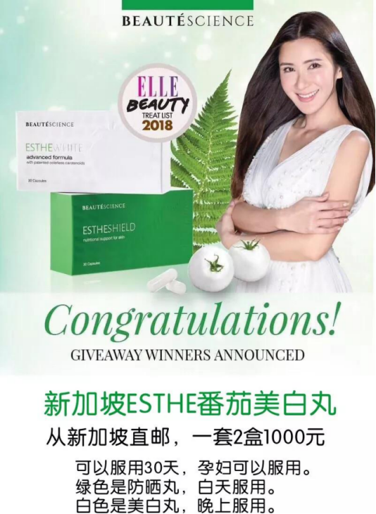 新加坡ESTHE番茄美白丸采用以色列培育的白番茄做原料,内服调理让肌肤营养健康,真的可以美白肌肤。