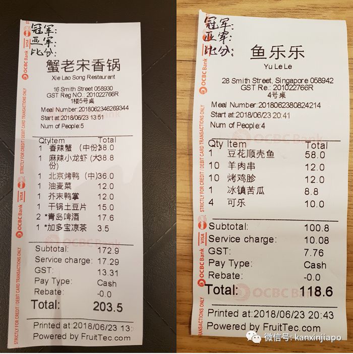比赛结束后揭盅,如果你猜对了冠军队,此单全免!凭此收据到蟹老宋鱼乐乐再吃一顿,抵用等值金额。