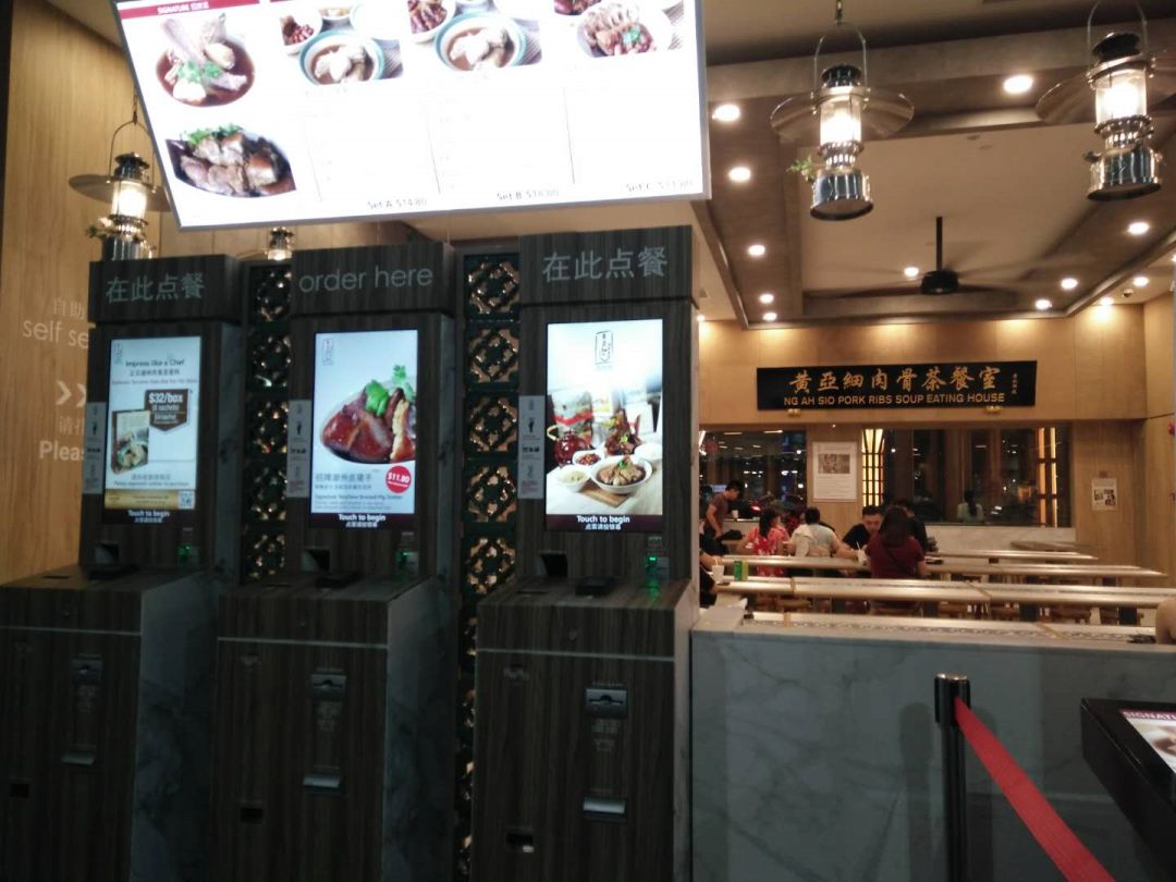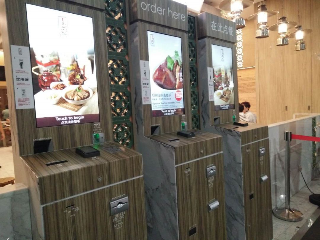 这是一家全自动化的餐馆,门口立着自己点餐的机器。在麦当劳、肯德基这些快餐店见到不足为奇,没想到这样的老字号也有~