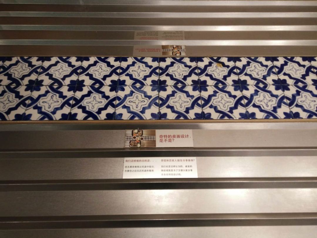 定睛一看,才发现桌上贴着桌子设计理念…….