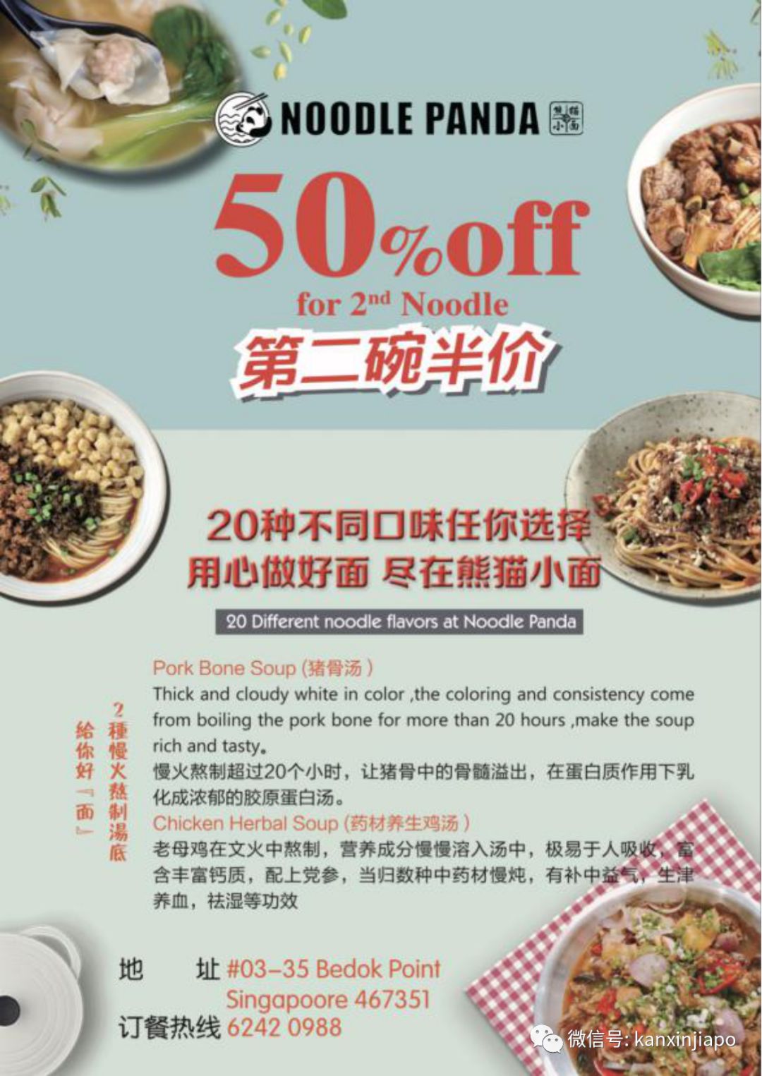 福利在此:福利一:即日起,凡到熊猫小面消费即可享有第二碗面半价
