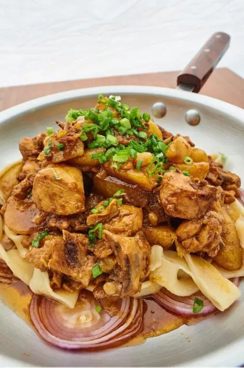 大盘鸡是新疆名菜,后传入四川。由熊猫小面改良,用鸡肉和土豆加皮带面烹制而成。色泽明艳,爽滑鲜香的鸡肉搭配软糯甜润的土豆配以香料焖制而成。绝对色香味美,余香绕梁。